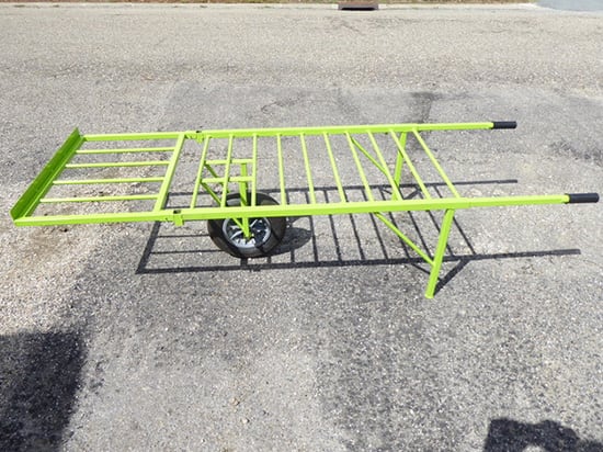 - Possibilité d'installer la ridelle avant à plat pour agrandir la brouette